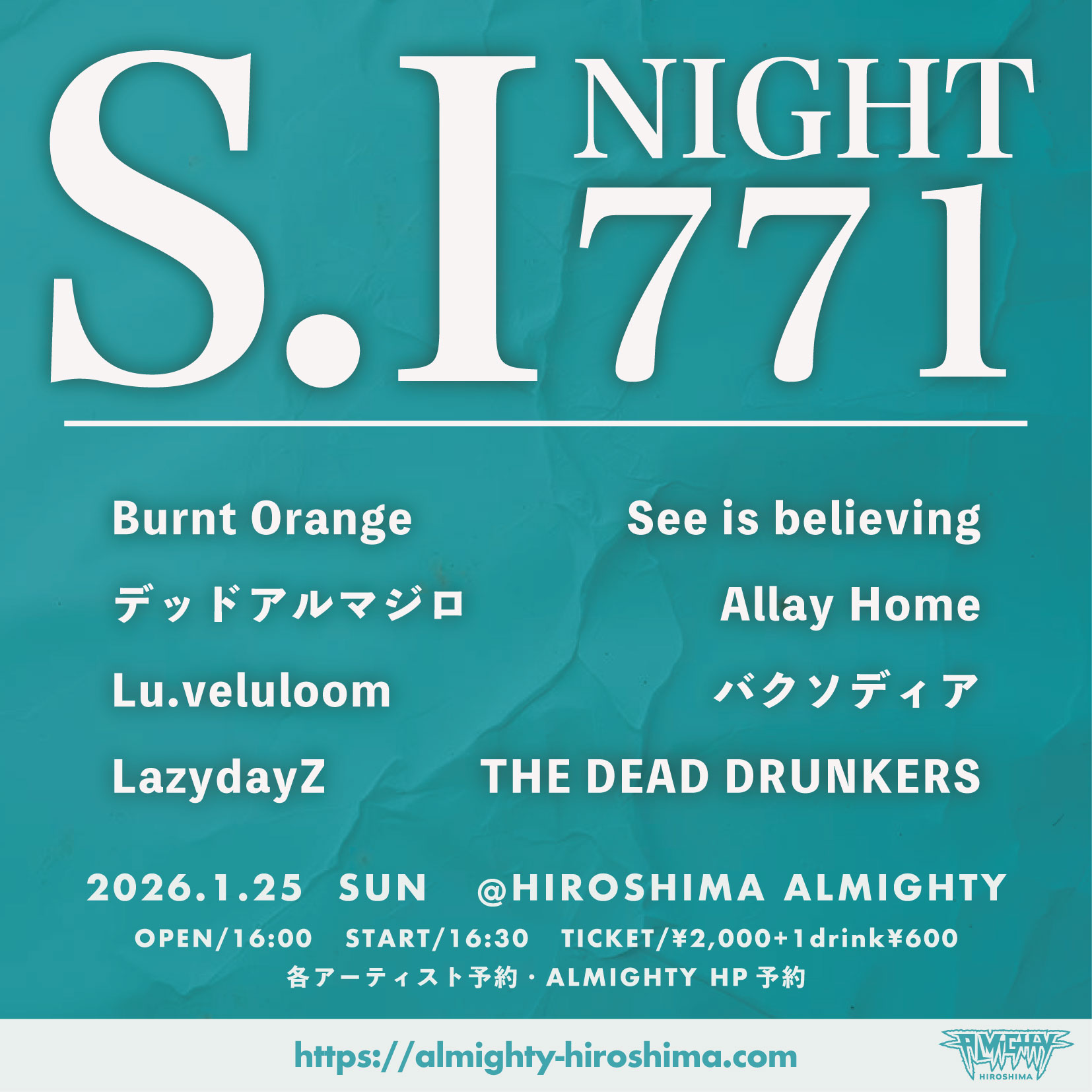 - Burnt Orange / デッドアルマジロ / Lu.veluloom / LazydayZ / See is believing / Allay Home / バクソディア / THE DEAD DRUNKERS