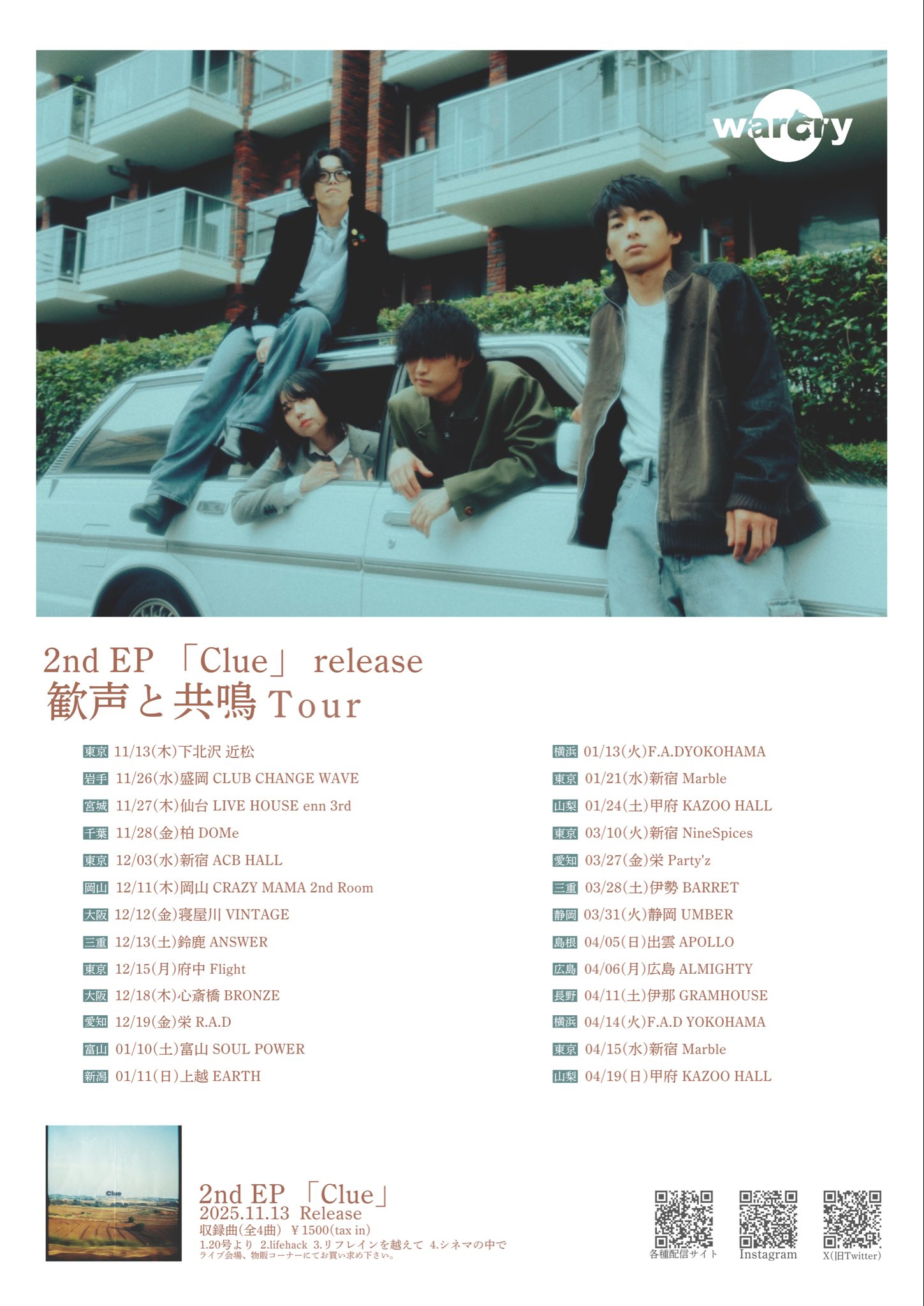 warcry 2nd EP「Clue」release 歓声と共鳴Tour